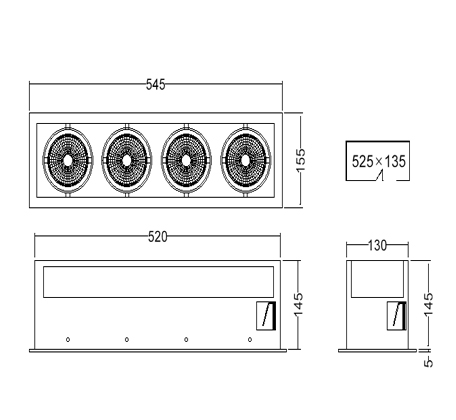 W545 x D155 x Height by wattage