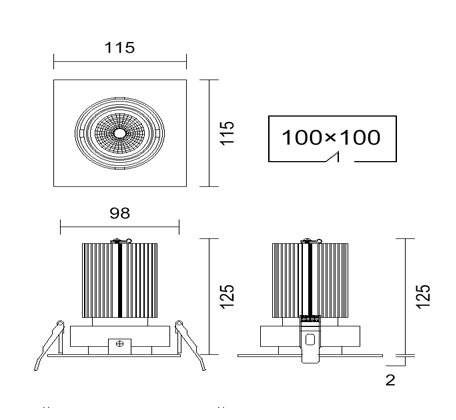 W115 x D115 x Height by wattage