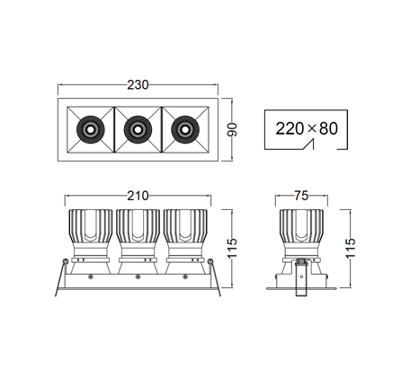W230 x D90 x Height by wattage